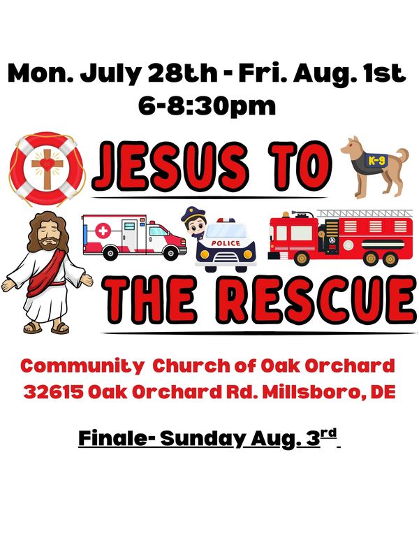 Monday- Friday the program is 6-8:30pm. Each night we will offer dinner for the kids from 6-6:30pm and then they will go into the sanctuary to learn about Jesus and His rescue plan for each one of us! The program will include special guests like firefighters and other 1st responders with activities like bible stories, crafts, games and snacks. Kids ages 3-14 will be participating in the VBS program and ages 15+ will be group helpers! On Sunday August 3rd from 10:30- 12pm we have a special finale where the kids perform all the songs they learned during the week for the entire church. After the program on Sunday we invite you to stay for a meal to celebrate the closing of VBS from 12:00-1:30pm.